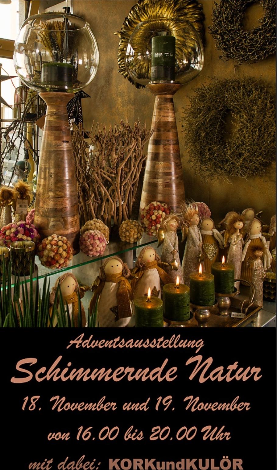 Schimmernde Natur 18. November & 19. November 2022 von 16:00 – 20:00 Uhr mit dabei: KORKundKULÖR